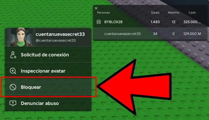 Menú de bloqueo desde el perfil del jugador